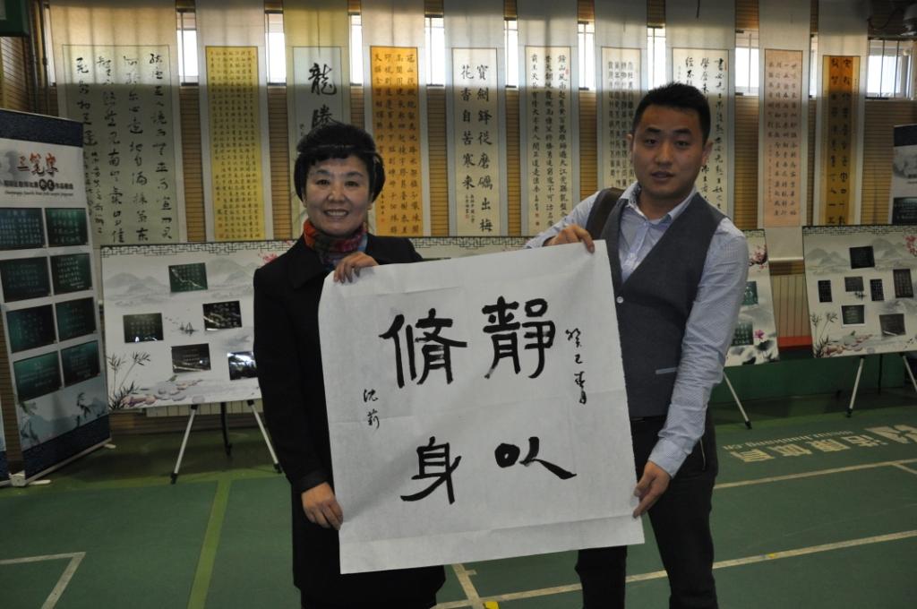 沈莉老师、薛夫彬先生、吕品先生在现场挥毫泼墨,表达了对朝阳区书法教育的殷切希望。