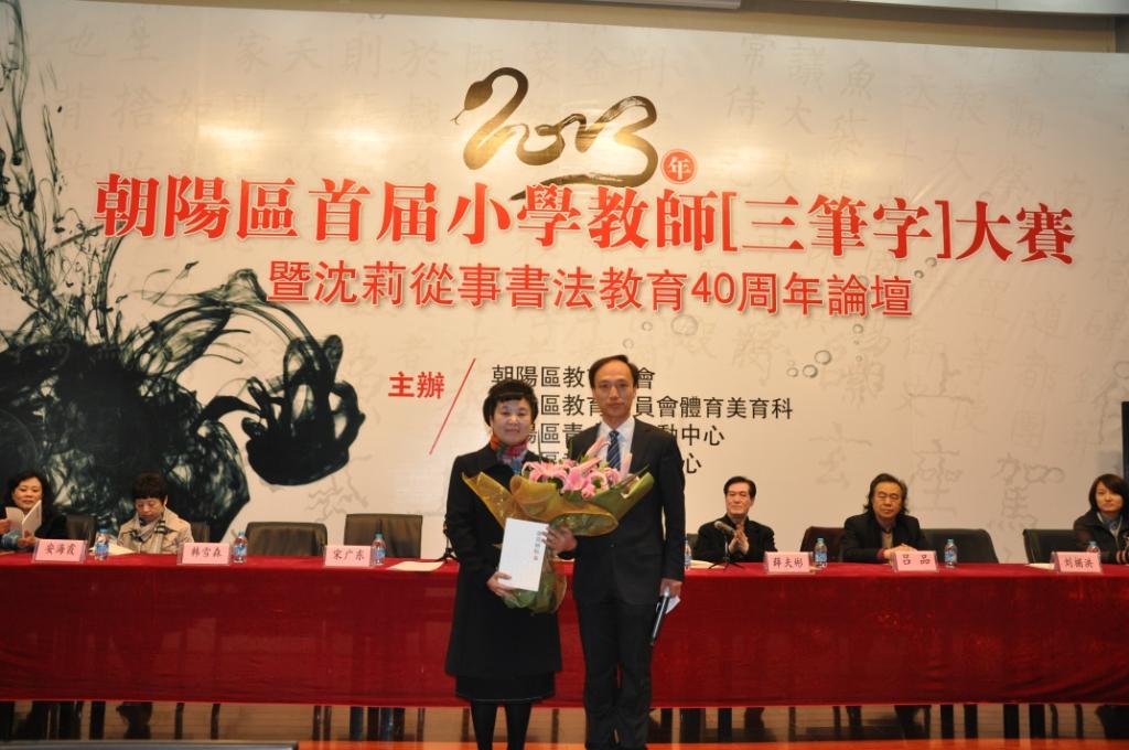 活动中,姜继为副主任对朝阳区开展的书法教育给与了充分的肯定,并以“四十载黑白人生,五百里朝阳教育”来概括和赞扬了沈莉老师温润四十年书法教学。